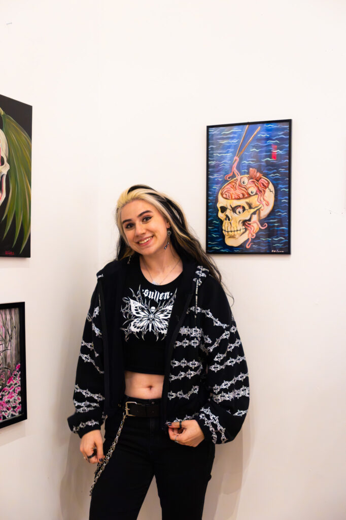 The gallery walls were covered with eerie, beautiful, and colorful pieces that captured everything from surreal Halloween moments to raw street-style creativity. It wasn’t just about looking people were actually connecting, chatting with the artists, and taking in the atmosphere.